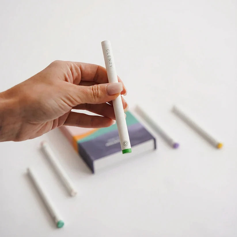 Clenzy works by mimicking the ritual of vaping—inhale, exhale, and hand-to-mouth motion—while replacing nicotine with beneficial ingredients.